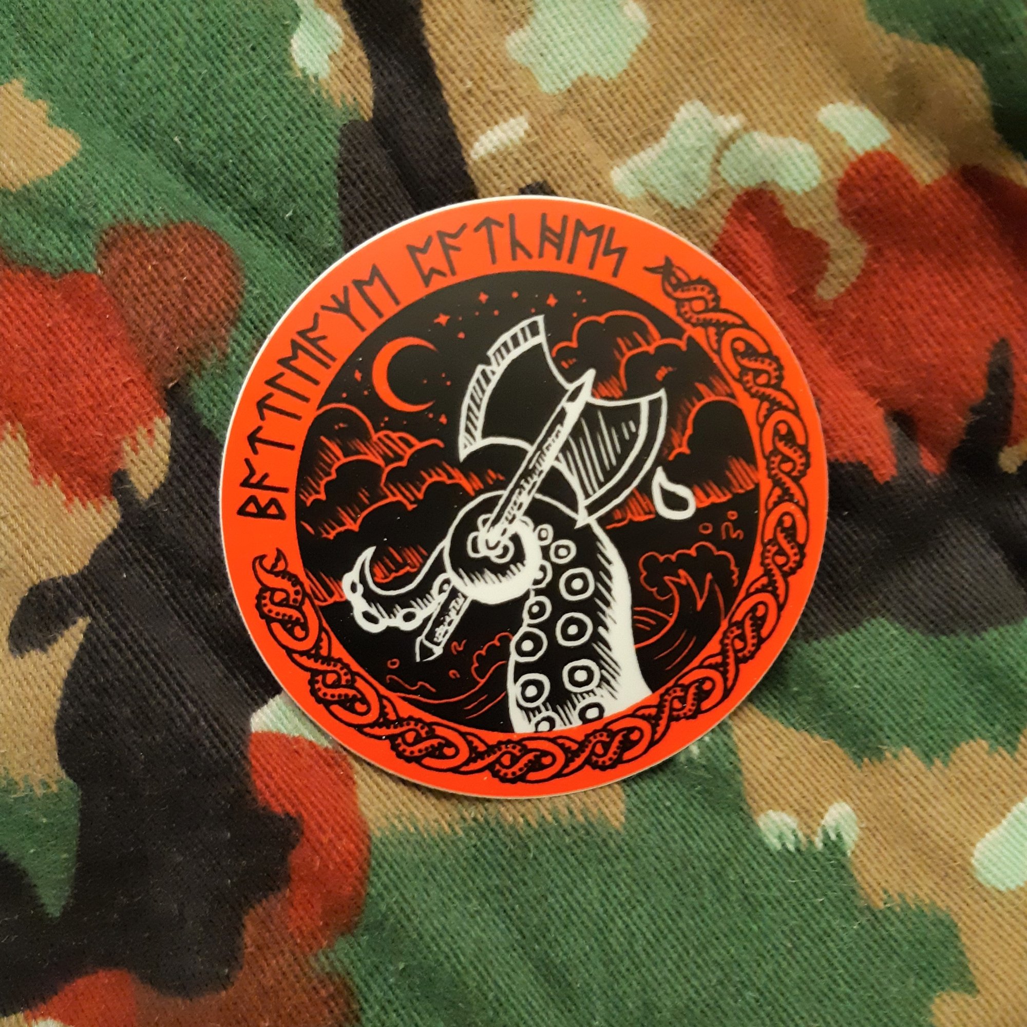 The perfect sticker for any would-be Wasteland Viking or Elder God Squid Cult member.